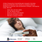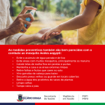 Já quanto às medidas preventivas, os cuidados também são muito parecidos com o combate do Aedes aegypti, incluindo limpeza de quintais, descarte adequado do lixo, controle da água parada e uso de repelentes. Confira outras orientações nas artes.