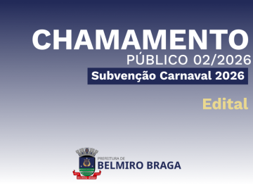 PROCESSO nº 001/2026 —DISPENSA nº 001/2026 ABERTO AVISO RECEBIMENTO DE PROPOSTA COMPLEMENTAR Prefeitura Municipal de Belmiro Braga – Dispensa n° 001/2026. Aviso de recebimento de propostas complementares. O Município de Belmiro Braga, na forma da lei, faz saber, que a partir das 09h00mim do dia 16/01/2026 até as 16h00mim do dia 20/01/2026, estará recebendo propostas complementares podendo ser encaminhadas no endereço eletrônico: licitacao@belmirobraga.mg.gov.br ou entregue de forma presencial no setor de Contratação para o seguinte objeto: Registro de Preço para Futura e Eventual aquisição de materiais e produtos de artesanato para oficinas e atividades recreativas do CRAS se faz necessária para garantir a continuidade e a qualidade das ações socioeducativas desenvolvidas junto às famílias e indivíduos em situação de vulnerabilidade social. O artesanato, além de ser uma prática cultural e artística, constitui-se como ferramenta pedagógica que promove inclusão, fortalecimento de vínculos comunitários e desenvolvimento de habilidades manuais e criativas, tipo Menor Preço por Item conforme Termo de referência. Belmiro Braga 15 de janeiro de 2026. EDITAL