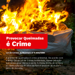 Além disso, a prática de queimadas é crime ambiental, de acordo com o Artigo 54 da Lei de Crimes Ambientais nº 9.605/1998. Causar poluição que possa gerar danos à saúde humana, morte de animais ou destruição significativa da flora é passível de multa e pena de reclusão.