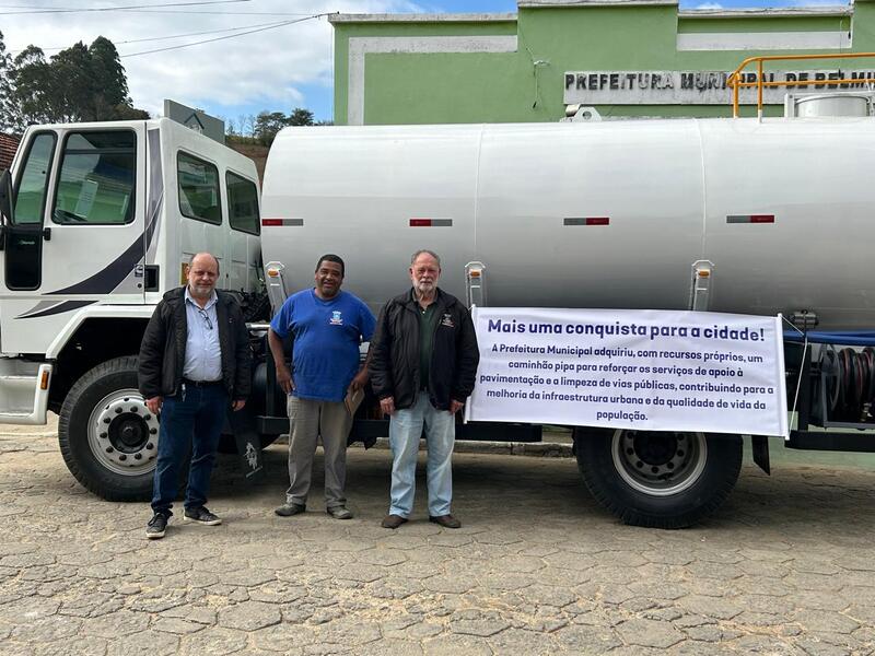 Com recursos próprios, a Prefeitura adquiriu um caminhão pipa para reforçar os serviços de apoio à pavimentação e de limpeza das vias públicas, contribuindo para a melhoria da infraestrutura urbana e da qualidade de vida da população.