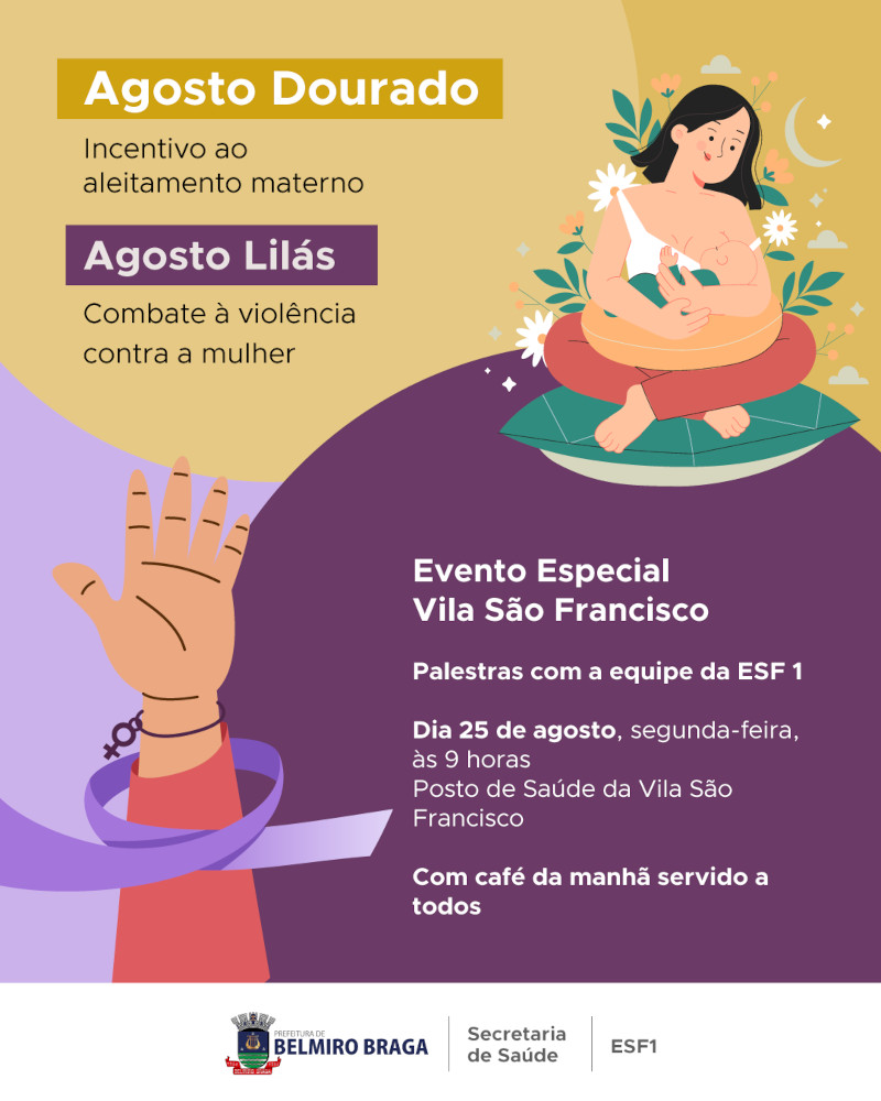 • Agosto Dourado, que aborda a importância do aleitamento materno para a saúde da criança e da mãe.