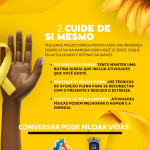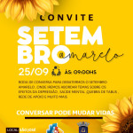 Vamos falar sobre saúde mental? A Secretaria de Saúde, por meio da ESF 2, convida toda a comunidade para participar de uma roda de conversa especial sobre a Campanha Setembro Amarelo, de promoção do bem-estar emocional e prevenção ao suicídio.