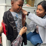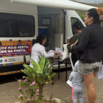 Na unidade móvel instalada na praça da localidade, pessoas de todas as idades puderam colocar o cartão de vacinas em dia e se proteger contra várias doenças.