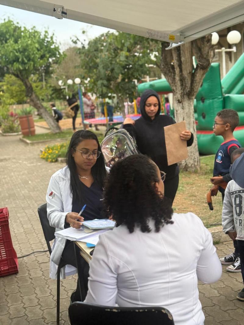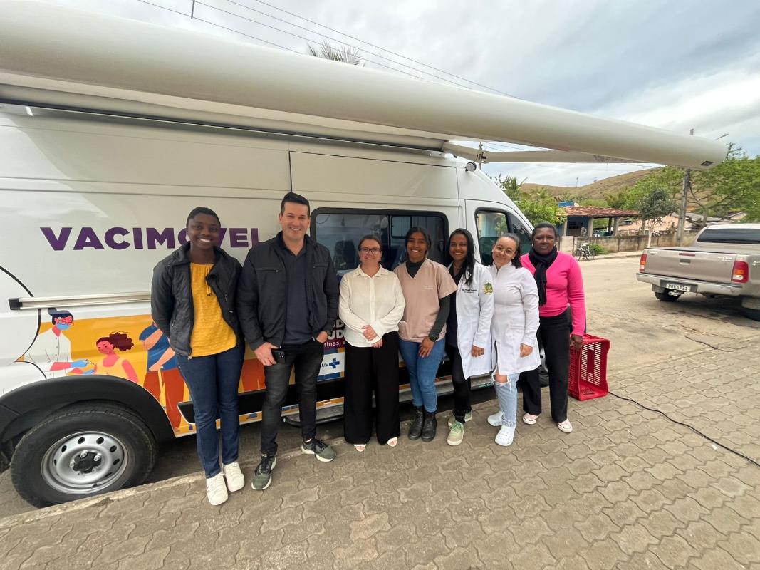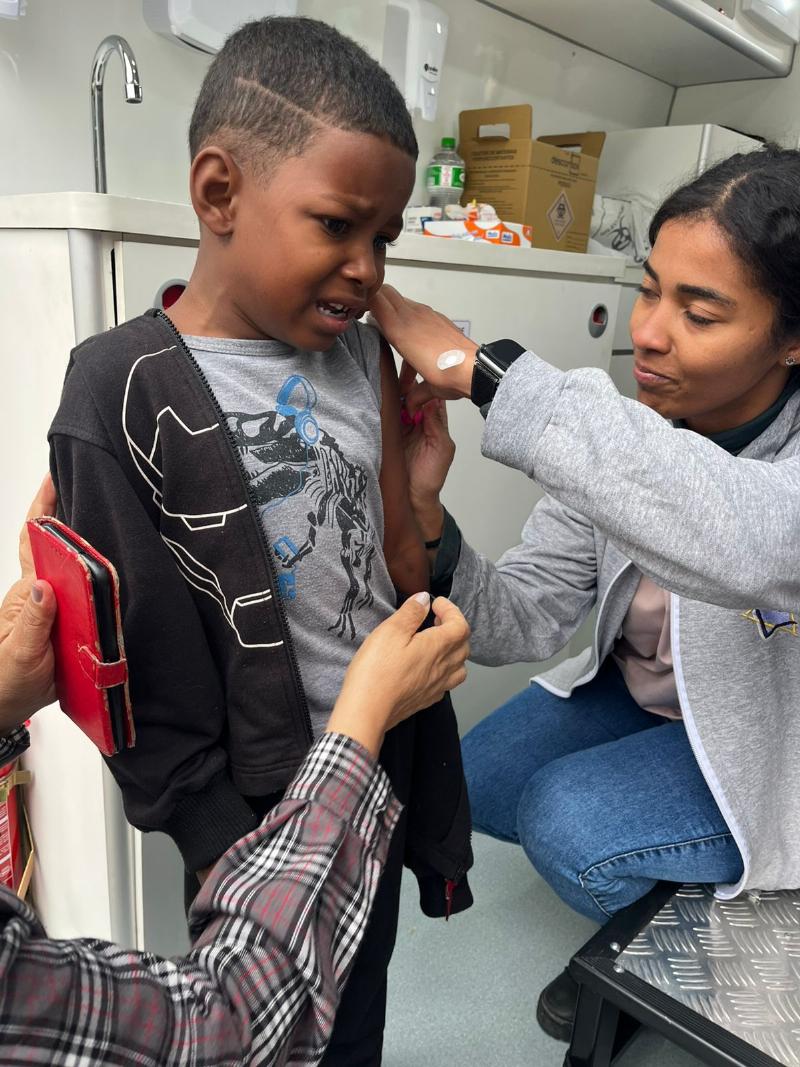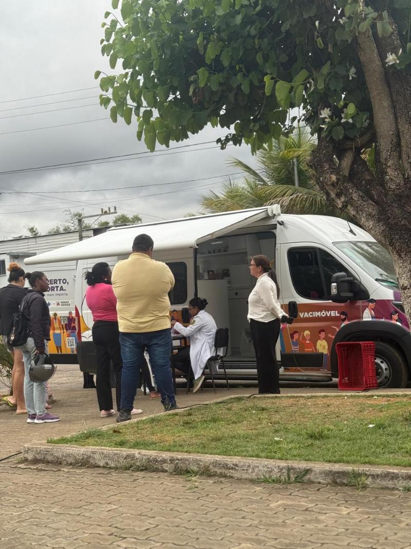 Na unidade móvel instalada na praça da localidade, pessoas de todas as idades puderam colocar o cartão de vacinas em dia e se proteger contra várias doenças.