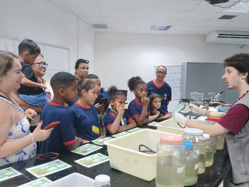 No Centro de Ciências da UFJF, os estudantes participaram de duas oficinas — “Animais vertebrados e invertebrados” e “De onde vêm as cores?” — que despertaram grande curiosidade e entusiasmo entre as crianças.