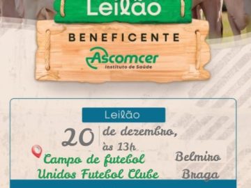 No dia 20 de dezembro o Campo de Futebol Unidos Futebol Clube receberá o Leilão Beneficente em prol da Ascomcer, unidade de saúde de grande importância no tratamento de pacientes com câncer em toda a nossa região.