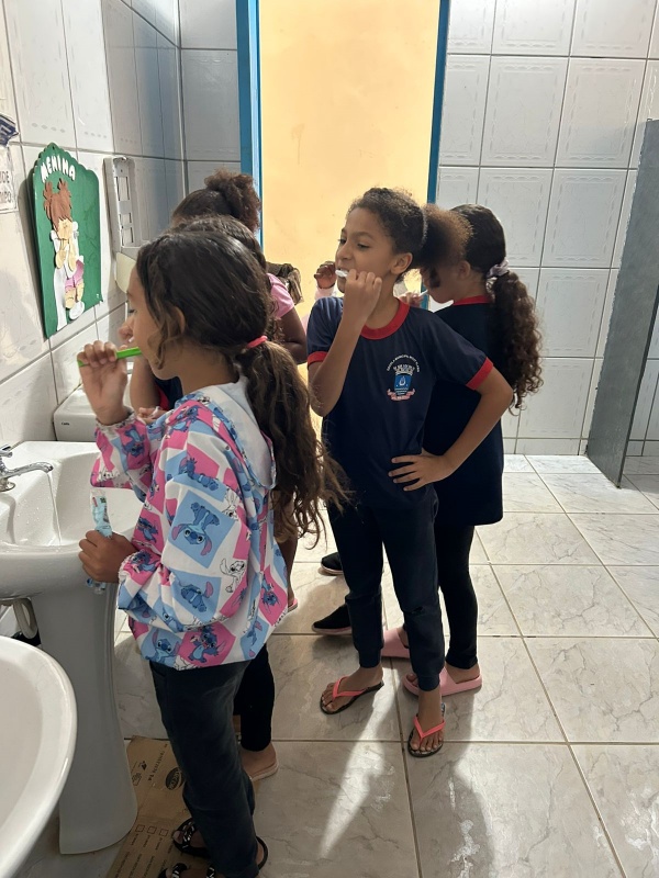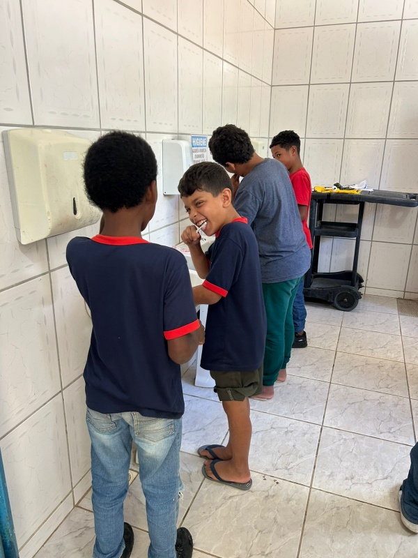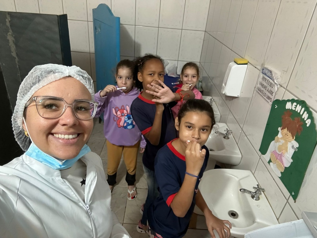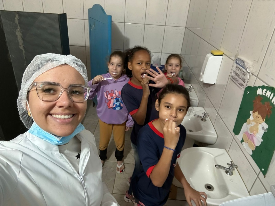 A garotada participou ativamente das atividades, aprendendo na prática sobre a importância da escovação adequada, do uso correto do fio dental e da necessidade de manter os dentes limpinhos e saudáveis.