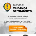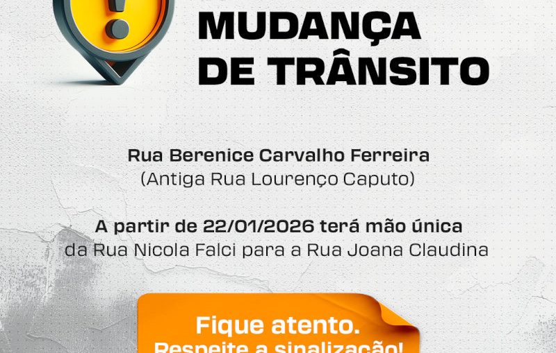 A Rua Berenice Carvalho Ferreira (antiga Rua Lourenço Caputo) passará a operar em mão única, no sentido da Rua Nicola Falci para a Rua Joana Claudina.