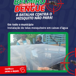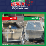 Numa ação de grande importância, os agentes de endemias estão percorrendo todo o município para verificar as condições das caixas d’água. Sempre que identificam tampas mal vedadas ou improvisadas, colocam telas mosquiteiro, impedindo a entrada do mosquito e evitando a proliferação.