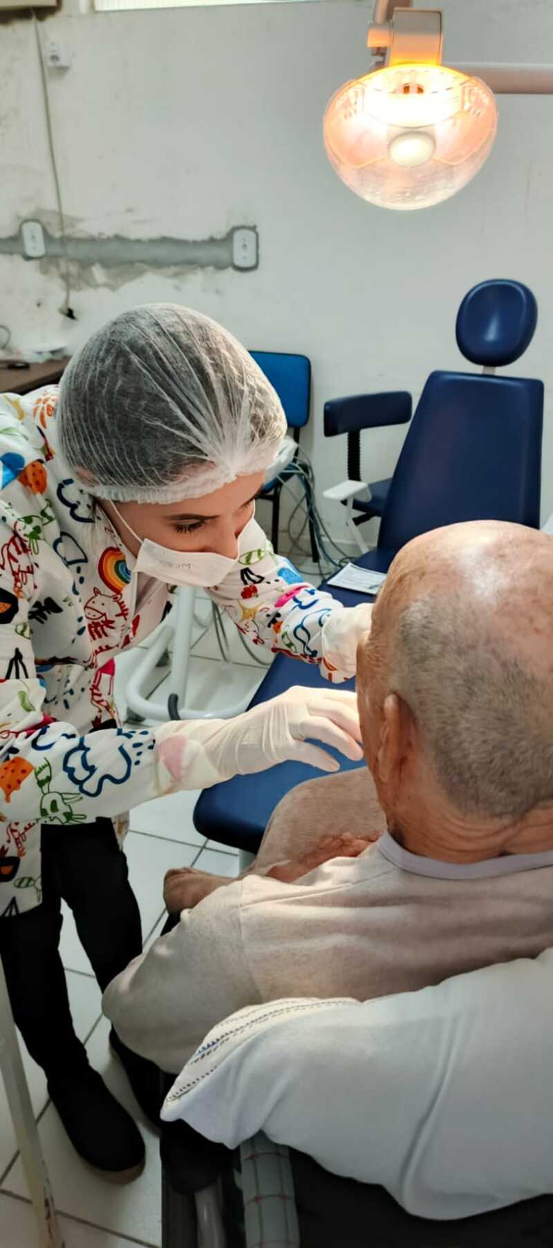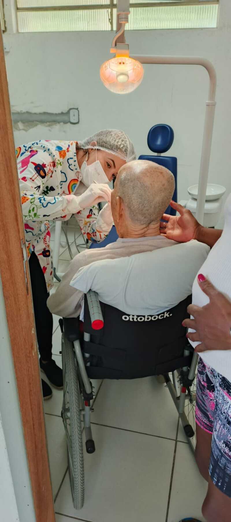 Quando o paciente não pode comparecer ao posto, seja por limitações de mobilidade, uso de cadeira de rodas ou por estar acamado, a equipe se organiza para realizar o atendimento diretamente na residência, garantindo cuidado, acompanhamento e orientação em saúde.