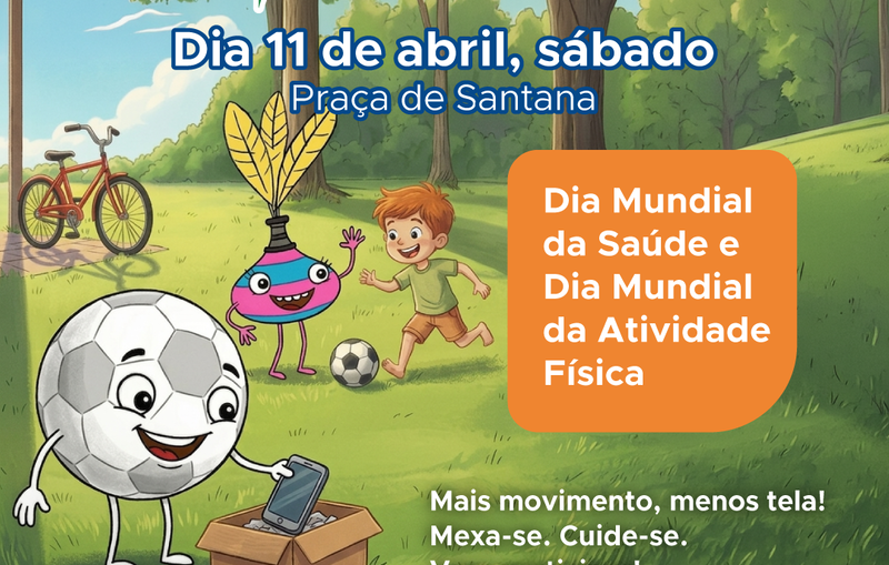 No próximo sábado, dia 11 de abril, a Secretaria de Saúde convida adultos e crianças a deixarem as telas de lado e participar de um grande momento de lazer na Praça de Santana.